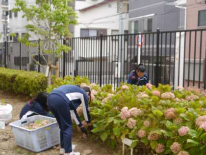 実際に教室に入って先生の仕事を見たり、管理作業員の方々とあさがおの剪定などの経験をしたりしました。
