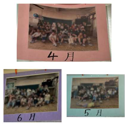 3組の教室には、毎月の学級の写真が掲示されていました。子どもたちが一年間の成長を細かく振り返ることができるように、このような掲示をしているそうです。写真からでも、クラスが打ち解けて、スマイルいっぱいの学級になっている様子が伺えました!