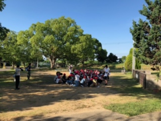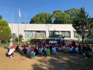 万が一の災害時、玄関前のファイアー場に集合です。5年生一人一人の活躍のおかげで、全て予定通りに活動が進んでいます。