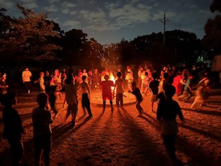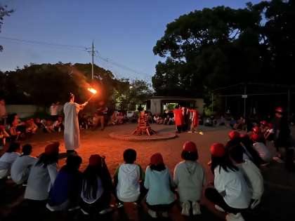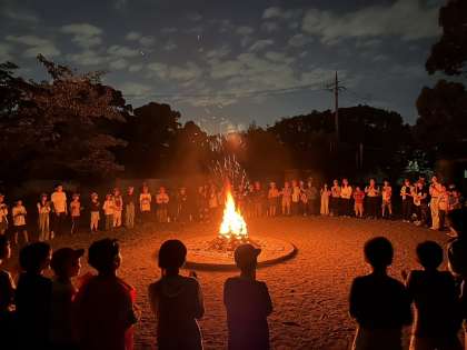「遠き〜山に〜日は落ちて〜」いよいよ、一日めのクライマックス、キャンプファイアのスタートです!