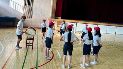 赤白団長を中心に、さまざまな拍子を教え合っています。