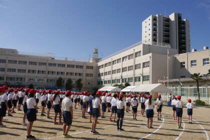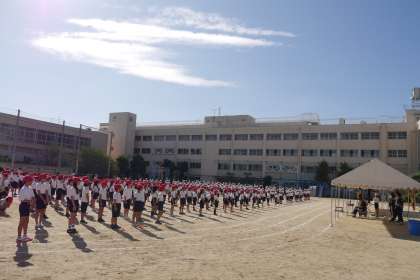 今日は1時間目から、全校児童で運動会の全体練習を行いました。