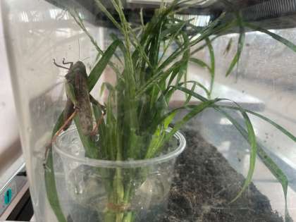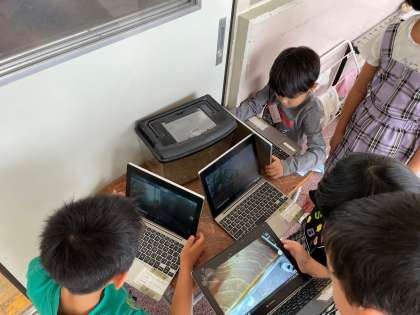また、子どもの声に誘われたのか、教室の窓に遊びに来た虫もいて、虫かごを用意し、観察しています。