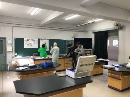 本校の理科室を依羅連合町会の対策本部とし、非常用のトランシーバーで各町会からの避難者数などの確認が行われました。