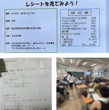 家庭科「生活を支える物やお金」の学習で、実際に購入したレシートを見て、買い物の仕方についてみんなで考えました。