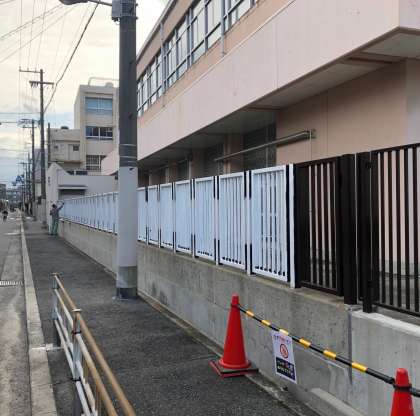上段・中段:北門から講堂裏にかけての柵の塗装