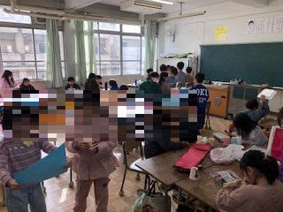 お家などから持ってきた空箱や食品のトレイ等を使って思い思いのおもちゃを作りました!