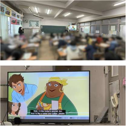 レストランで注文のやりとりがされている場面のビデオを見て、「What would you like? (いかがなさいますか?)」というフレーズの学習が進められていました。子どもたちの英語力がまた一つアップしていました!!