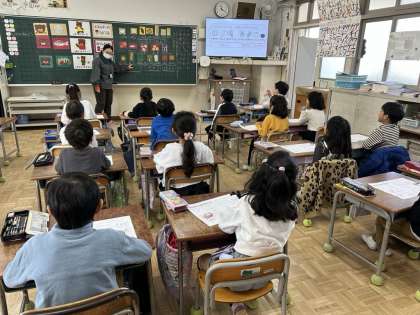 食に関して教えてもらった後の給食は「世界一おいしい!」と、味わってしっかりと食べていました。
