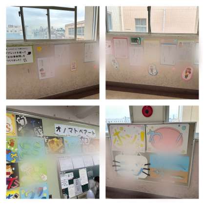 よさみタイム(総合的な学習の時間)の「お仕事新聞」と、図画工作の「オノマトペアート」が完成しました!