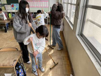 2月21日(金)1年 たてわり清掃「きれいになったよ!」