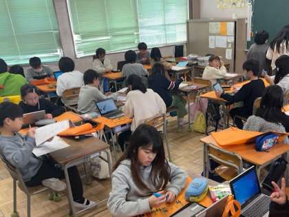 ある教室では、一緒に学び合ってきたクラスの仲間へ感謝の気持ちを込めてメッセージカードを書いていました。