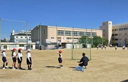 普段触れることの少ないボールに子どもたちも「大きい!」「重たい!」と声をあげていました。