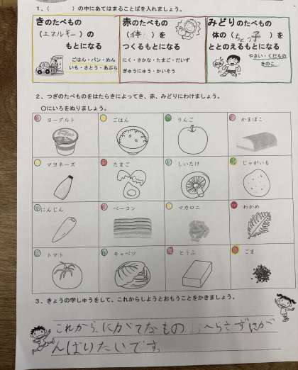 3大栄養素は、どういった働きをしているのかについて学習し、食に対する知識を深めることができました。