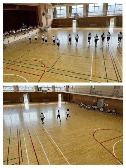 待っている間も、走っている子を応援したりペアの子の記録をとったりしました。