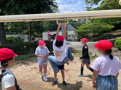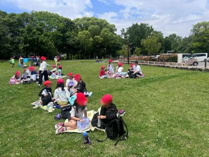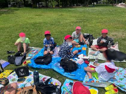 お弁当とおかしを食べた後は、フリスビーをしたり、おにごっこをしたりして遊びました。