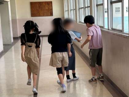 休み時間は友だちと「学校探検」をする姿が見られました。