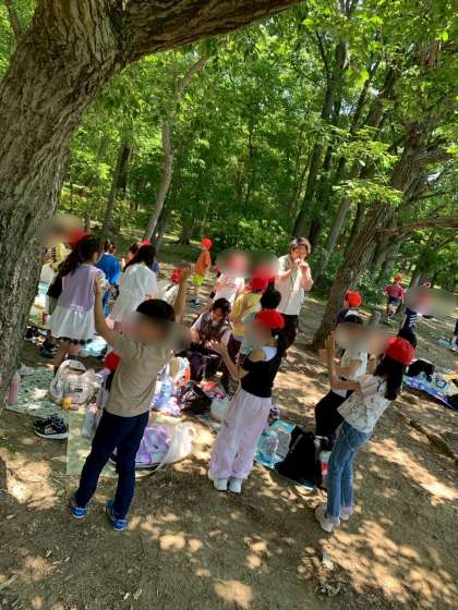 お弁当、お菓子を食べて元気いっぱいに走り回ったり、楽器を持ってきた先生たちと一緒に手拍子をして歌を歌って楽しいひと時を過ごしました。