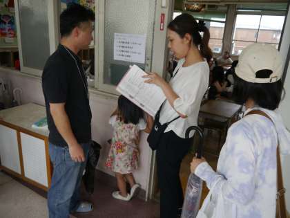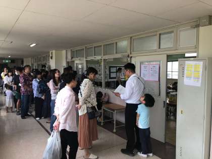 有事を想定して、学校で待機している児童を保護者に確実に引き渡す訓練でした。