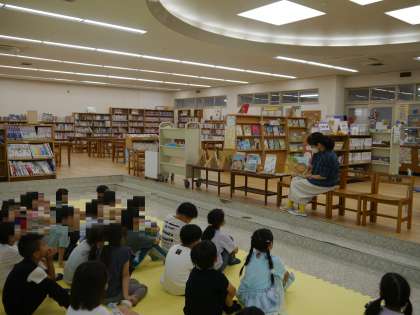 図書室をのぞいてみると、図書館補助員の梅田さんが読み聞かせをしてくれていました。