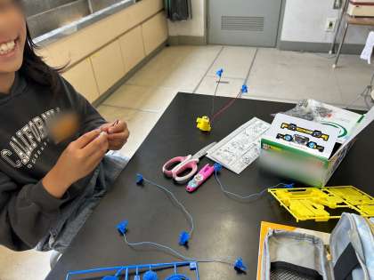 班の友だちと協力し、乾電池の数やつなぎ方をかえた時のモーターの回る様子について調べたり、検流計の針の振れ方について調べたりしました。