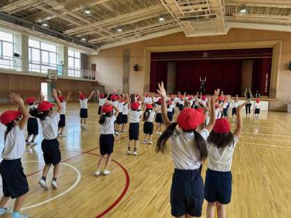 しっかりお話を聞き、一生懸命に「アヒルの体操」の練習をしていました。