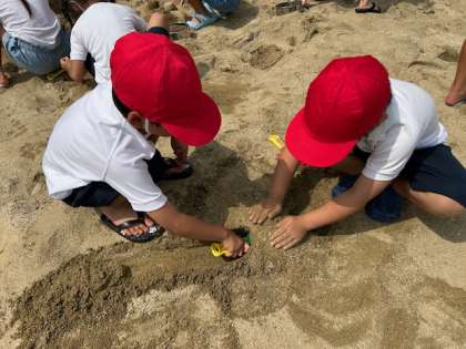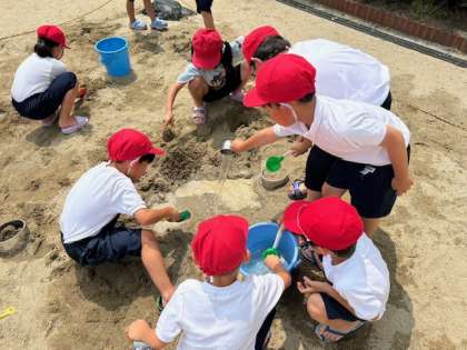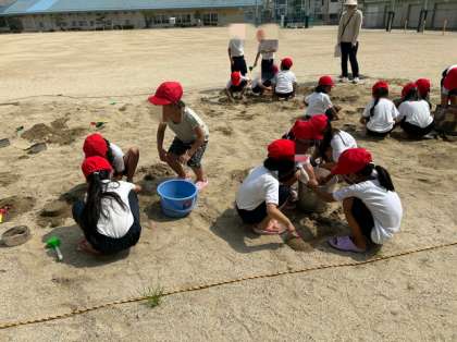 川やお山を作ったり、ケーキののようなものを作ったりして、とても楽しそうでした。