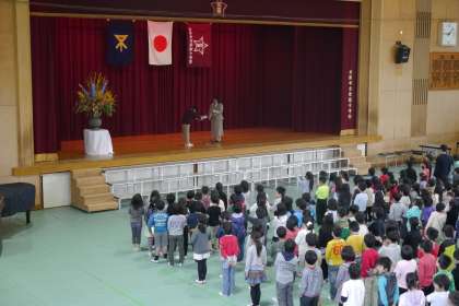 校庭の桜が咲き始めた本日、依羅小学校体育館にて修了式が行われました。