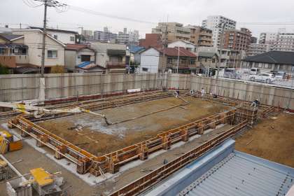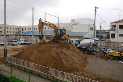 運動場に建てられた塀からも重機が見えている理由は、写真のように土の山の上に置かれているからということがわかります♪
