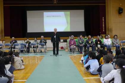 次に、「おはよう隊」を代表して、老人会・PTAの方よりあいさつがありました。