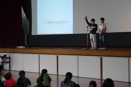 2枚目は、スライド写真など全部自分たちで操作して発表しているようすです。