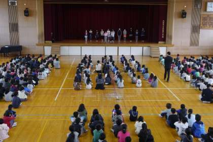 スピーチでは各学年の代表の子どもたちが、2学期にがんばったことをみんなに一生懸命伝えることができました。