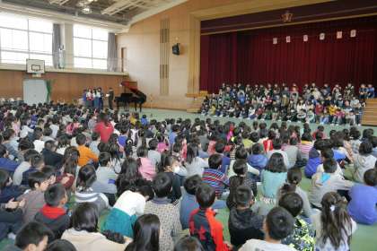 6年生は、少し緊張した面持ちで体育館に入場しました。