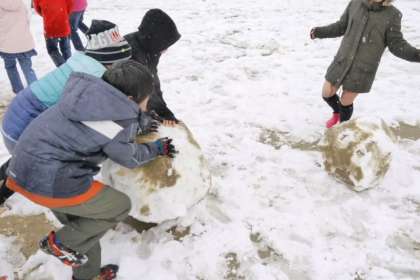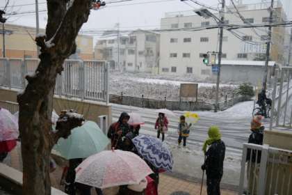 大阪に久しぶりに雪が積もりました。朝から登校の安全確保のため、雪かきや見回りをおこないました。一方、子どもたちは皆一様に、にこにこ顔で登校。嬉しそうに降り積もる雪を触っていました。せっかくなので、各学年で時間と場所を決めて、雪との触れ合いを楽しみました。