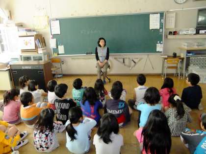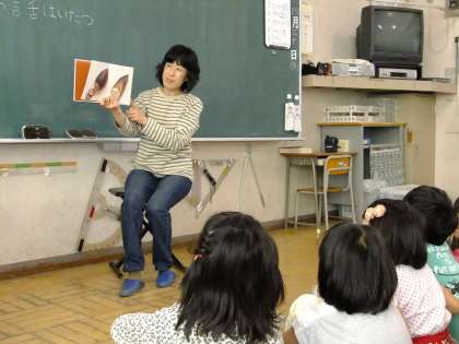 本や紙を一切見ないで、おとぎばなしのように、こどもに語りかけます。