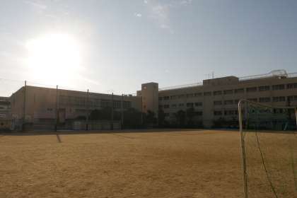 朝日に輝く小学校