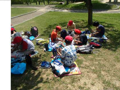 5月1日に、春の遠足でビッグバンと大蓮公園へ行きました。子どもたちは、ビッグバンではたくさんの遊具で楽しみ、大蓮公園では広い芝生の上でお弁当を食べた後、元気に遊んでいました。また、学校の外でのマナーや、集団行動の大切さもしっかりと意識して行動することもできていました。