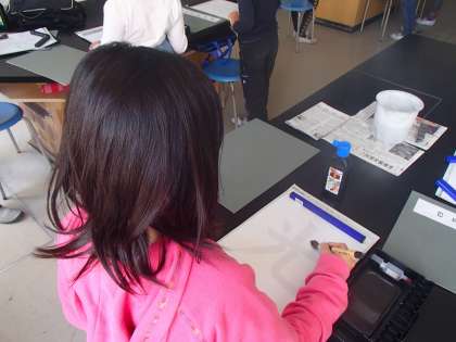 4年生になって初めての、理科室での毛筆。用具の準備の仕方や、練習の仕方、片付け方と盛りだくさんな1時間でしたが、子どもたちはいつも以上に集中していました。次回は、今回練習した「光」の字を清書します。どんな作品ができあがるのか、今から楽しみです。