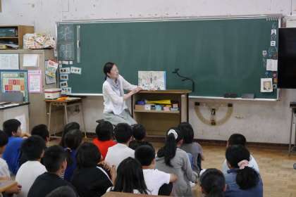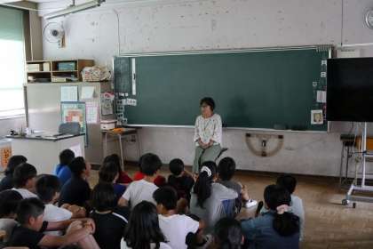 毎月、話し手の皆さんが教室に訪れて子どもたちに読み聞かせを行ってくれています。