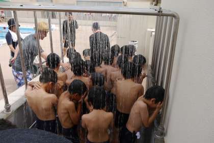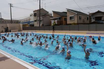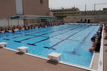 今週の月曜日から水泳授業が始まりました。気温は30度を超え水温も高かったですが、風が吹くと寒く感じる時もありました。