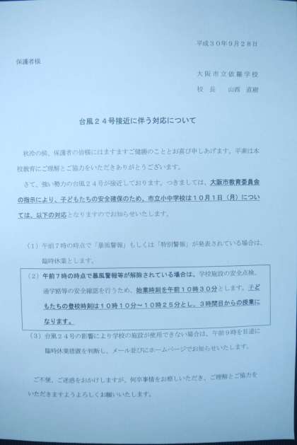 本日、子どもたちに配ったお手紙です。よろしくお願いします。