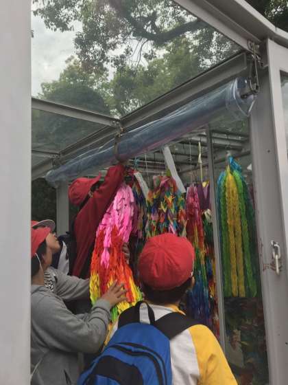 みんなで折った千羽鶴を奉納しました。