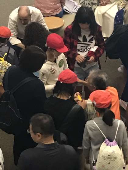 熱心にボランティアガイドさんのお話を聴いたり、展示をじっとみたり、よくがんばっています。