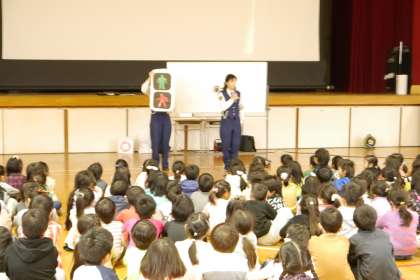 住吉警察の方に来ていただき、道路標識や自転車の乗り方などにいついて、話をしていただきました。