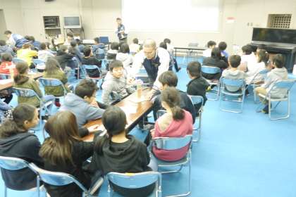 ゲストティーチャーとして、「星のくに」グループに来ていただき「天体観測」についての話と望遠鏡を使っての観察を行いました。昼間に望遠鏡を使う珍しさに気持ちが高ぶりながら、取り組んでいました。
