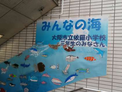 一学期に、地下鉄のあびこ駅より依頼があり、依羅小学校の3年生で海の生き物の絵を描きました。