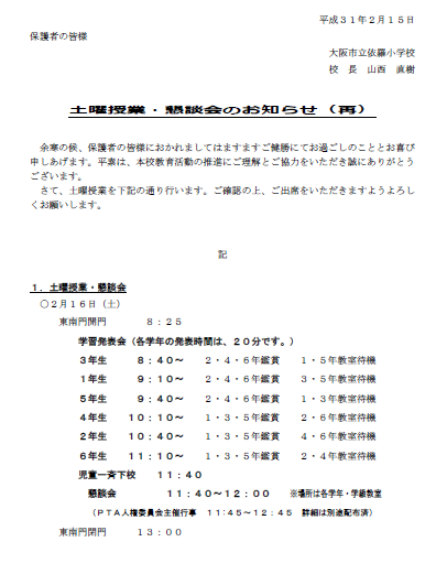 土曜授業のお知らせ