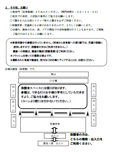 本日配布しました。子どもたちの発表にご協力をお願いします。