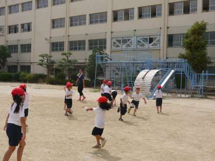 友達同士で水をかけあったり、先生を追いかけたりしていてとても楽しそうでした。