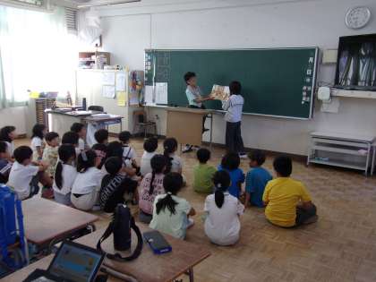 5年生の図書委員が、2年生の児童に読み聞かせを行いました。